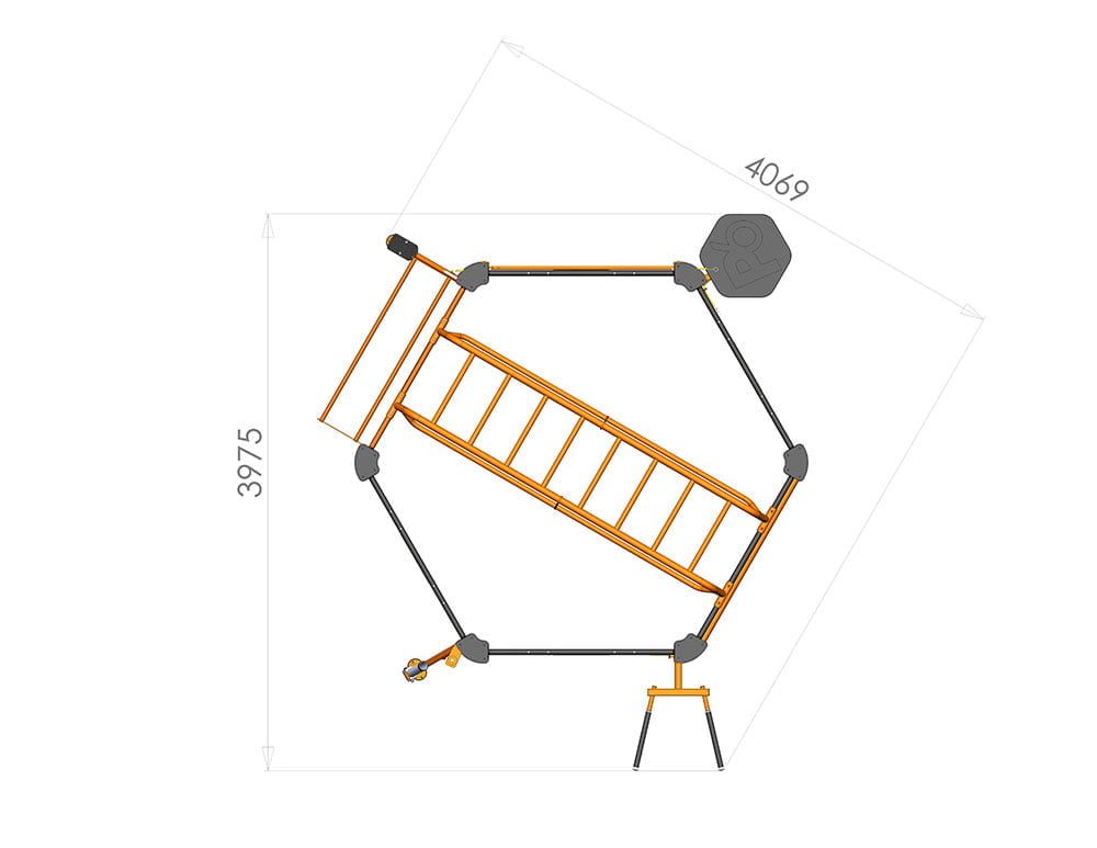 Основная конструкция в форме гексаграммы включает в себя 6 широких станций для тренировок, а их расположение по кругу обеспечивает прекрасные условия для групповых занятий. В добавок, каждый угол конструкции оснащен двумя стойками с регулировками. Любую деталь можно расположить как угодно – никаких ограничений! Раму можно привинтить к полу или установить на резиновое покрытие. 6 широких станций и 2 стойки на каждом углу в итоге трансформируются в 18 разных станций для тренировок, и это не считая лестницы.